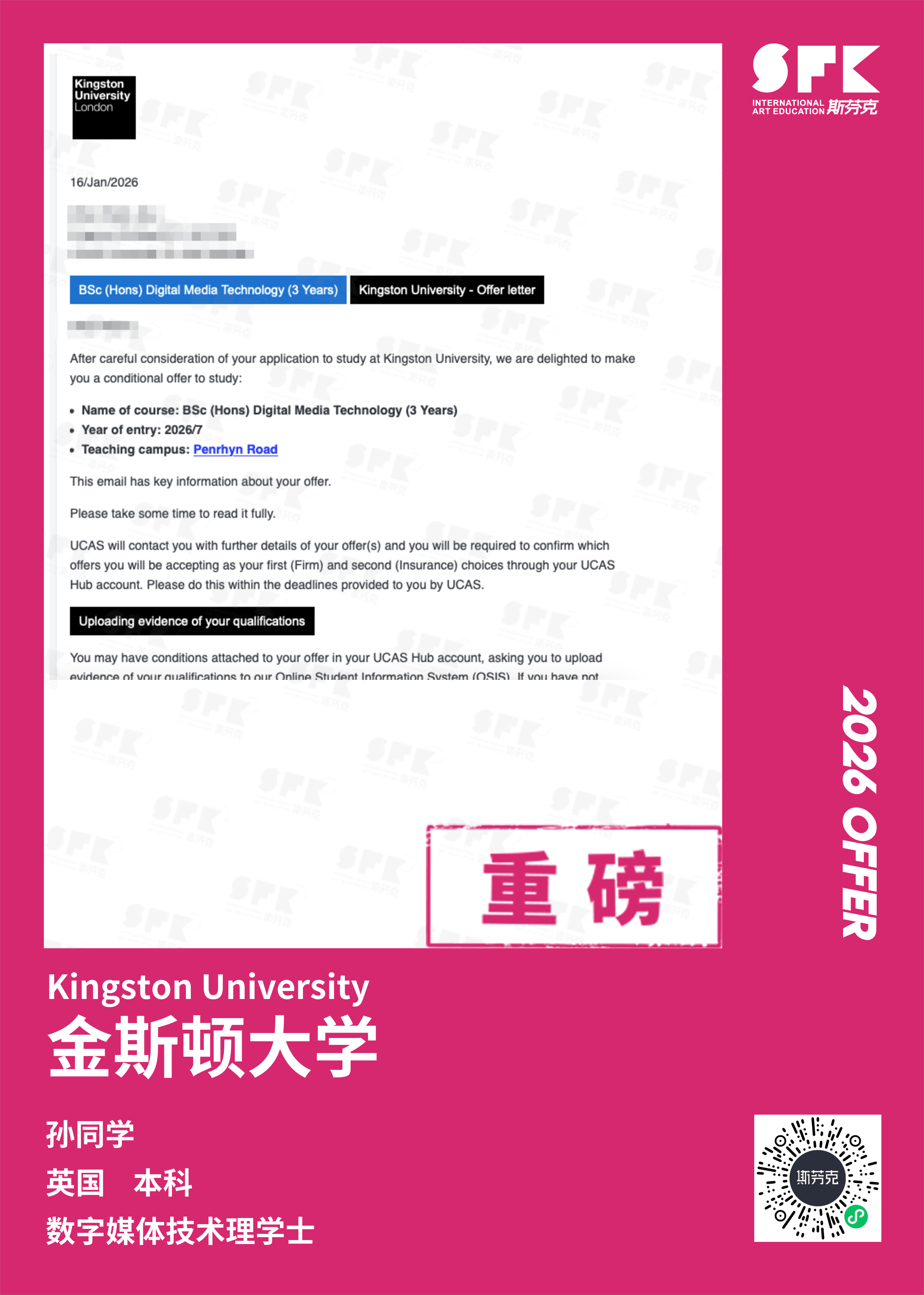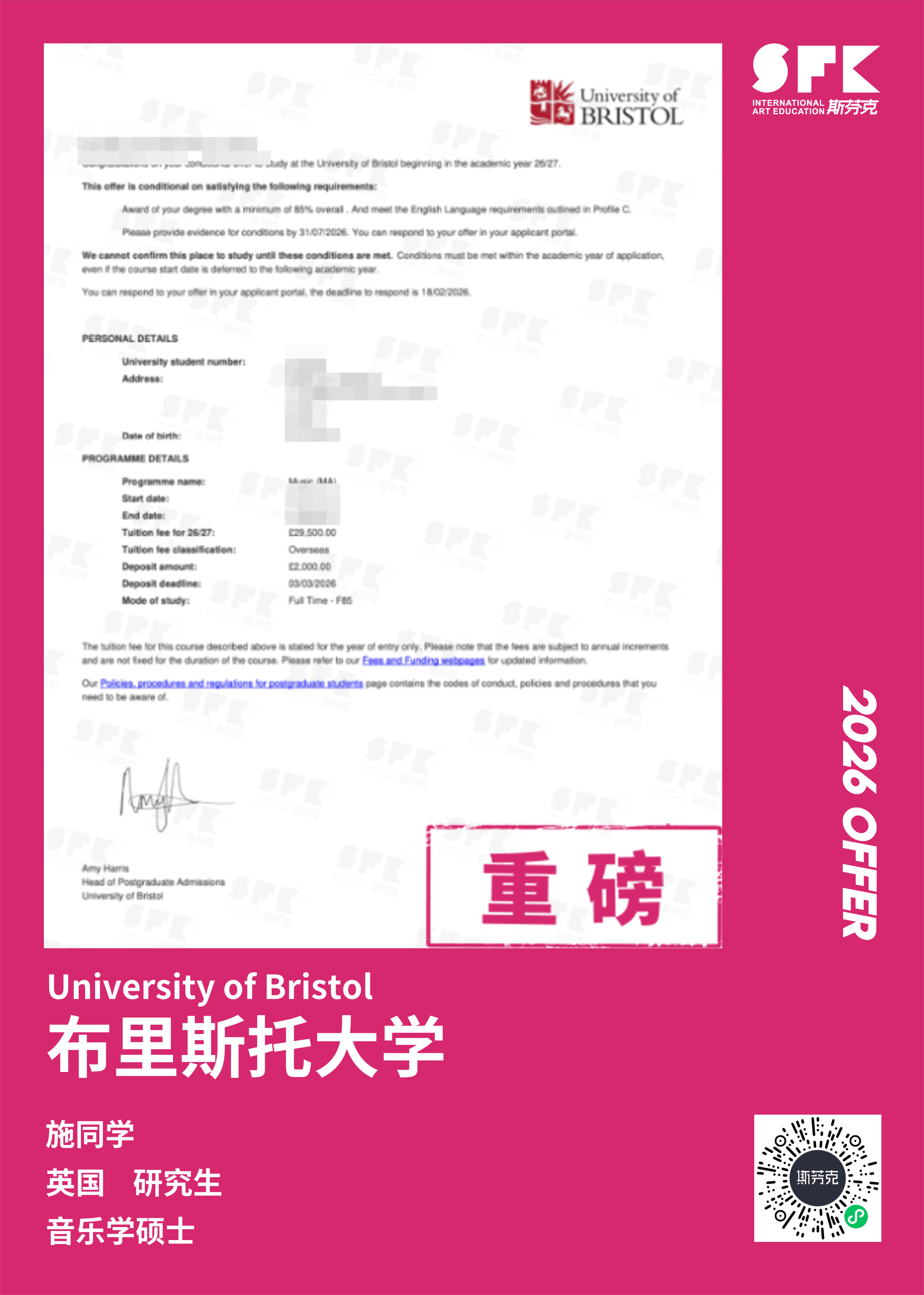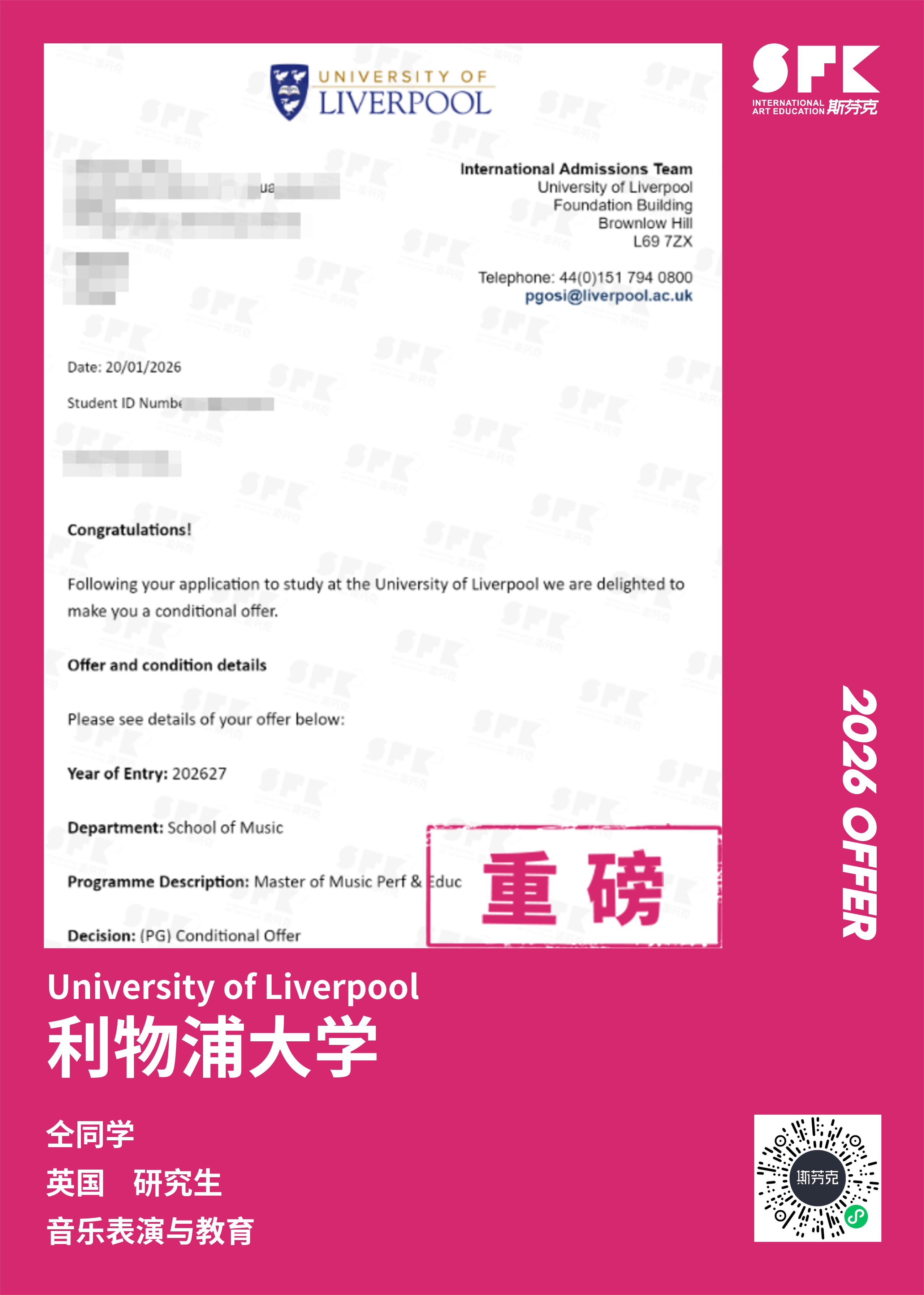 斯芬克音乐已帮助学员获得越来越多的国外音乐院校Offer